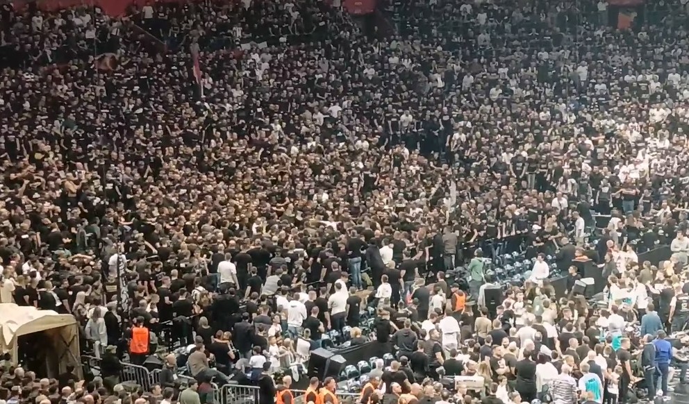Во средината на втората четвртина од натпреварот во Евролигата меѓу Партизан и Париз, дојде до тепачка на делот од трибините каде што се наоѓаат најжестоките навивачи...