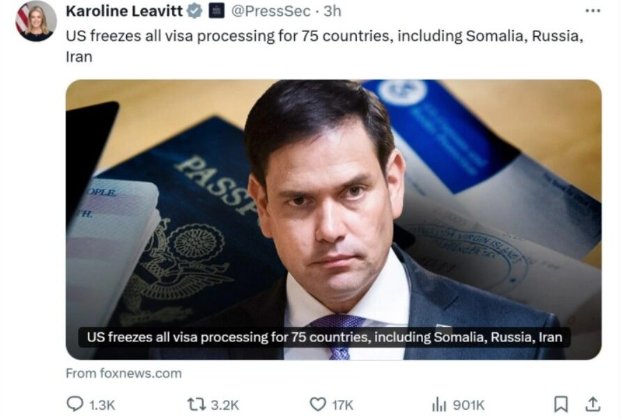 Администрацијата на американскиот претседател Доналд Трамп го суспендира процесирањето на сите иселенички визи за 75 земји почнувајќи од 21 јануари, објави Фокс њуз, повикувајќи се на...