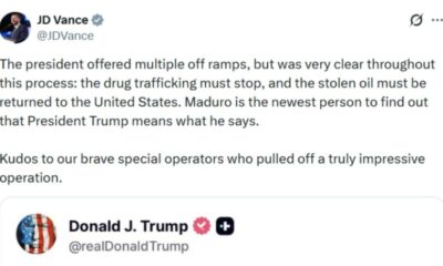 Потпретседателот на САД Џеј Ди Венс денеска ја поздрави „операцијата“ во Венецуела и им честита на „храбрите специјални оперативци кои изведоа импресивна операција“. – Претседателот понуди...