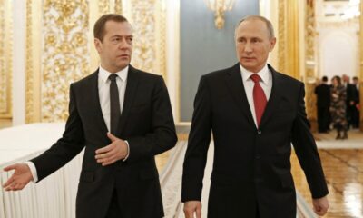 Рускиот претседател Владимир Путин го одликува заменик-претседателот на Советот за безбедност и лидер на владејачката партија „Единствена Русија“, Дмитриј Медведев, со Орден за заслуги за татковината...