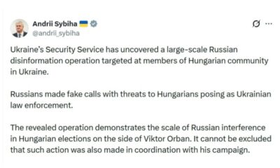 Украинската служба за безбедност (СБУ) вчера соопшти дека открила кампања за заплашување на унгарското малцинство во Украина, спроведена од руските служби. СБУ соопшти дека открила „нова...