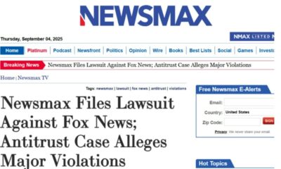 Американската телевизија Њузмакс поднесе федерална тужба против Фокс њуз, обвинувајќи ја медиумската куќа за злоупотреба на монополска положба и блокирање на конкуренцијата на пазарот на десно...