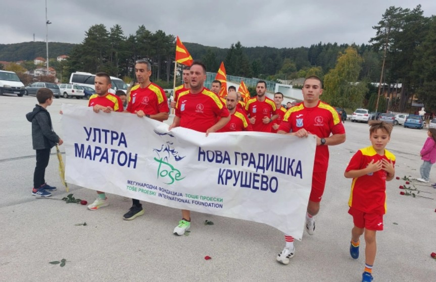 Со 500 рози, тага и сеќавања крушевчани ги пречекаа 12-те ултрамаратонци кои денеска пристигнаа во Крушево, на Гумење каде е вечното почивалиште на Тоше Проески, македонската...